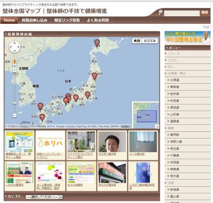 サイト閲覧者は、全国の希望地域ごとに整体院やカイロプラクティック院をマップ表示により、