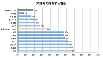 今回のアンケートでは、大掃除で掃除する場所を調査しています。