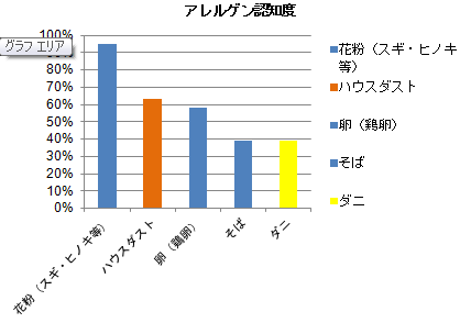 アンケートの結果おけるアレルギーの認知は「アレルゲン認知度」のグラフの通りです。