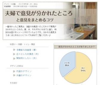 意見が分かれた個所としては「洗面・トイレ・風呂」や「キッチン」「リビング」などの場所から「デザインの好み」までと様々。特定の場所に偏ること なく多岐にわたり意見の相違が見られます。人の数だけ好みがあり、夫婦の数だけ相違点もある、という結果になりましたがいずれの場合も、意見をまとめるコ ツは「よく話し合う」というしごく当たり前の手段に落ち着くようです。