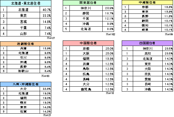 「北海道」を選ぶ地方居住者も多く、5つの地方で5位以内にランクイン。