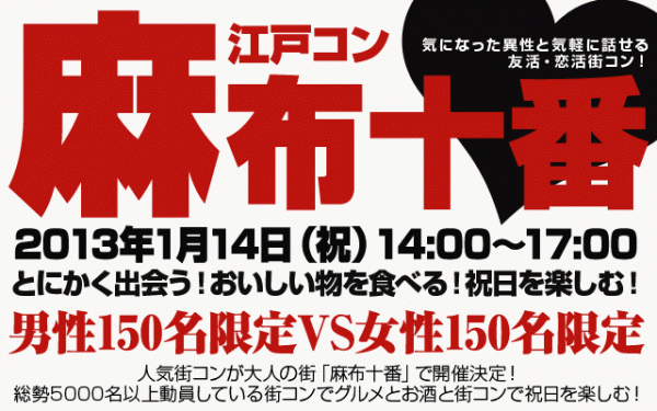 その江戸コンが1月14日に麻布十番の地域活性化を目指し、江戸コンin麻布十番を開催いたします。