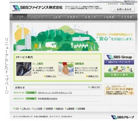 デザインを一新した新サイトには、SBSファイナンスのサービスメニューを判りやすく配置したほか、代理店となっている生命保険会社、損害保険会社のホームページへのリンクの設置、また、SBSグループ向けの専用メニューを用意し、利用者の利便性を高めています。