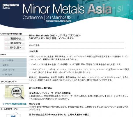 会議:「Minor Metals Asia 2013 -レアメタルアジア 2013- 」