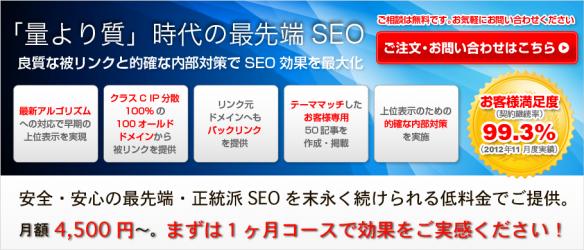 "量より質"時代の最先端SEO『SEOサポート』は単月契約のSEOサービスでありながら、お客様の契約継続率は99.3%(2012年11月度実績)。