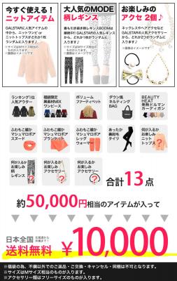 ランキング1位のアウターが必ず入る ・アウター ・ワンピース ・アクセサリー2点 ・ファーティペット ・ニットワンピ ・レギンス ・ヒートシリーズモモンガカーデ ・BAG ・タイツ ・ボアマルチウェイストール ・ボアレッグウォーマー ・ボアスヌード 計13点入りで10000円