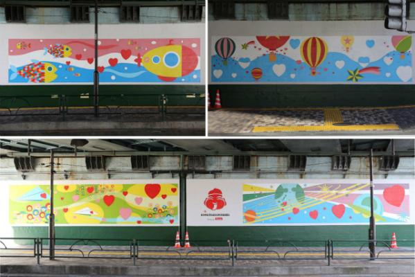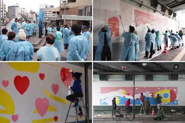 今回の取り組みは、街をキレイにすることで街全体に活気を生み出し、また犯罪抑止にもつなげたいと考えている「恵比寿・代官山 美化推進委員会」が、暗いイメージのあるJR恵比寿駅と駒沢通りが交差する高架下の壁面を、明るく華やかなデザインに変えることで、街をもっと明るく元気にしたいという想いから生まれました。