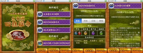 「大幸運四柱推命」占いアプリは、中国を起源とする、最も歴史の古い、的中率の高い占いです。生まれた年、月、日、時間からそれぞれの干支を割り出し、生まれながらに授かった運命、性格、才能、適正、恋愛傾向、人間関係はもとより、あなたがこれまでに歩んできた道のりや、これから先の未来に起こるであろう人生の転機などを、「天の気」と「地の気」を読み取ることから占っていきます。生年月日と出生時間から割り出したあなたの四柱推命式は、あなたの喜びから悲しみまでを網羅した、言わば人生の設計図のようなものです。その四柱推命式を忠実に解読していくのが、この「大幸運四柱推命」です。