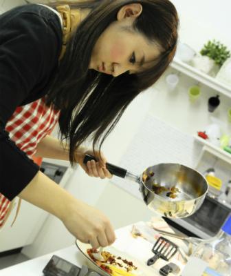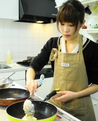 デコレーションが大好きで、キャラ弁をよく作る。今回もデコレーションから考えて、様々な食材を乗せたあとにソースをかけて食べるパンケーキを作ろうと思い、そのトッピングに一番合う生地を考えてパンケーキに入れる食材を考案した。撮影当日のデモンストレーションでは緊張したけれど、とても楽しくていい経験になった。