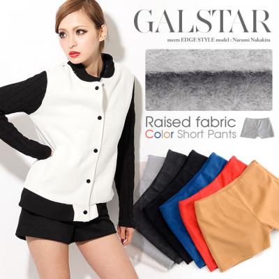 ■サイドZIPふわふわ起毛素材タック入りベーシックシンプルショートパンツ