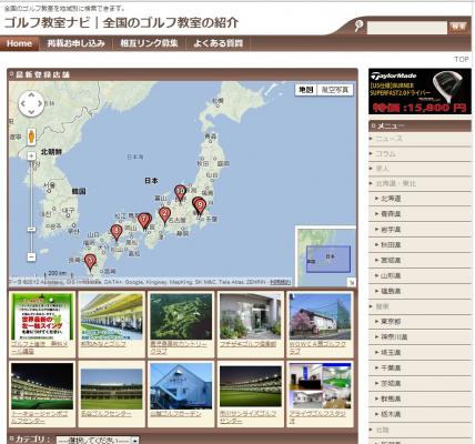 サイト閲覧者は、全国の希望地域ごとにゴルフ教室をマップ表示により、