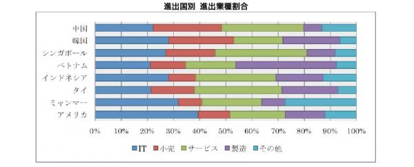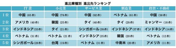 --各国への進出ランキング、件数推移、業種比率を公開