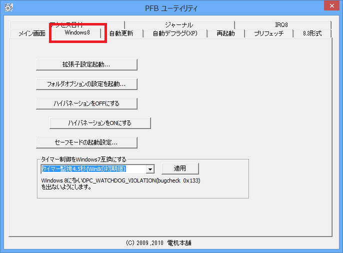 DPC_WATCHDOG_VIOLATION(Bug Check 0x133)エラーは、Windows8に完全対応したBIOS、チップセットドライバー、グラフィクスドライバーの普及によりいづれ出なくなる性質の問 題です。「Windows7互換タイマー監視機能」はメンテナンスの終わった古いマザーボード、Windows8に対応したドライバーの開発が遅れている マザーボードに対してWindows7互換の環境を与えるものです。VISTA, Windows7用のドライバに対して互換環境を提供して安定したWindows8環境を提供します。