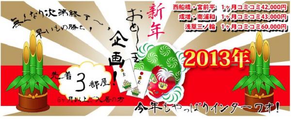 ■お年玉企画! キャンペーン内容 1ヶ月の家賃+水光熱費等 全てコミコミでの価格!