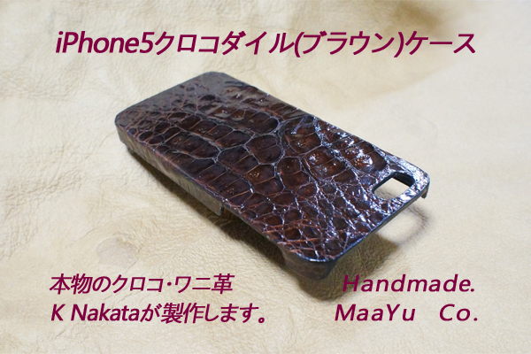 クロコダイルを1枚革の繋ぎ無しで作成したiPhone5用片面ケースです。