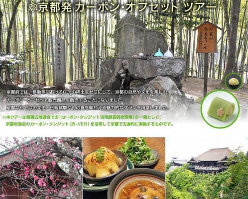 旅行時の移動等の際に発生するCO2排出量を、ツアー参加者に料金(100円程度)をご負担頂くことによって、京―VER(企業や府民が削減したCO2の環境価値)でオフセット(埋め合わせ)する、CO2排出ゼロとなる、エコツアーです。