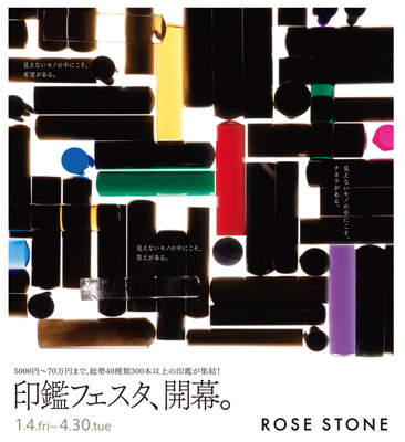 パワーストーン宝石印鑑とアクセサリーを実店舗とインターネットにて販売する「ローズストーン」(福井県鯖江市、運営:株式会社小林大伸堂・代表取締役:小林照明)では、新年初売りとなる2013年1月4日(金)から4月30日(火)まで、「印鑑フェスタ2013」を開催します。