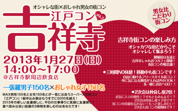 その江戸コンが1月27日に吉祥寺の地域活性化を目指し、江戸コンin吉祥寺を開催いたします。