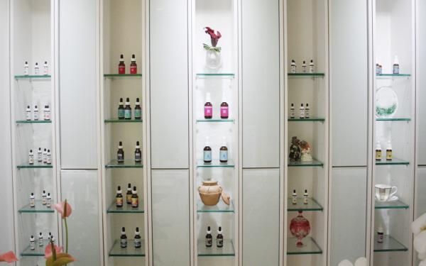 フラワーエッセンス・アロマオイルのセレクトは自由。それぞれ1つずつ選んで、飲み物と一緒に持って来てもらい