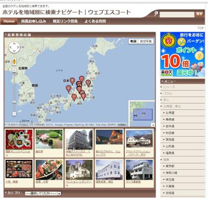 サイト閲覧者は、全国の希望地域ごとにホテルをマップ表示により、