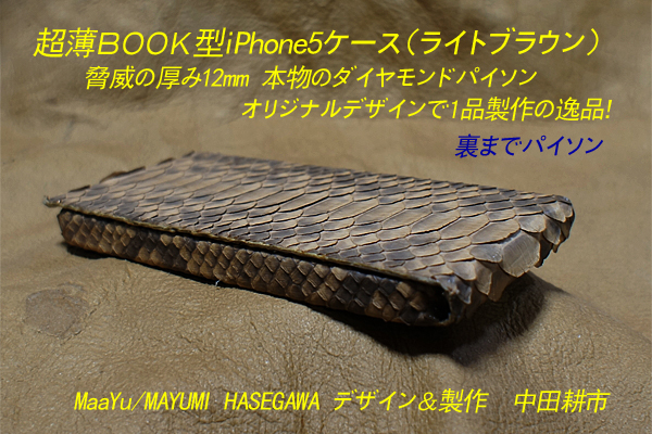 iPhone5超薄12mmダイヤモンドパイソン蛇革BOOK型ケース