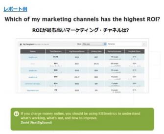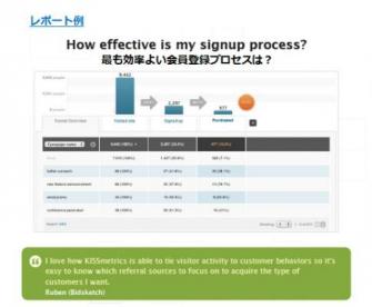 「KISSmetrics(キスメトリックス)」は、“Person-Centric Data”として顧客獲得、顧客維持率を上げ、アクショナブルなビジネス意思決定サポートし、ビジネスの成功に導くウェブ分析対策ツール。現在Fortune 500 and 100を含む大手企業等1,300社が顧客となり、TechCrunch, Forbes, Mashable, Fast Company, The Wall Street Journal, The Atlantic 等でも常に記事や各テーマに取り上げられている。