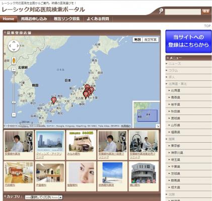 サイト閲覧者は、全国の希望地域ごとにレーシック対応医院をマップ表示により、
