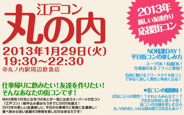 その江戸コンが1月29日に丸の内の地域活性化を目指し、江戸コンin丸の内アフター5を開催いたします。