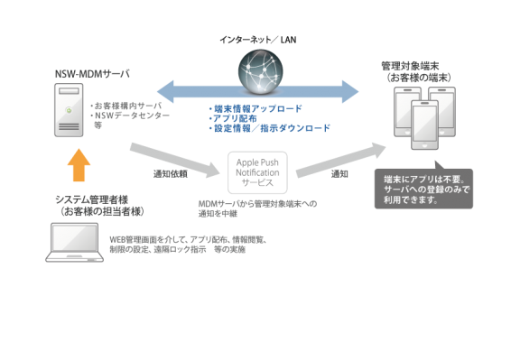 ITソリューションプロバイダのNSW(日本システムウエア株式会社、本社:東京都渋谷区、代表取締役執行役員社長 青木正)は、このたび、企業で保有するiPhone/iPad向けMDM(モバイルデバイス管理)サービス「NSW-MDM」(http://mdm.nswmps.jp/)の提供を開始します。