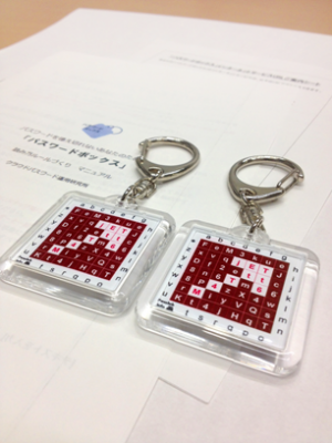 「パスワードボックス」キーホルダーは、情報セキュリティ大学院大学 内田勝也名誉教授が考案したパスワード管理方法を参考に、クラウドパスワード運用研究所にて開発・商品化したものです。