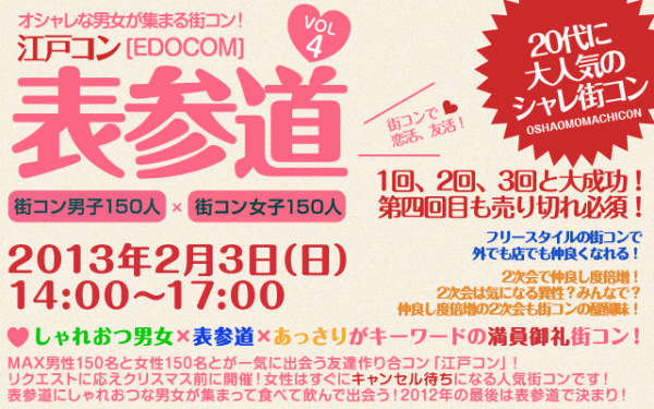 その江戸コンが2月3日に表参道の地域活性化を目指し、江戸コンin表参道を開催いたします。