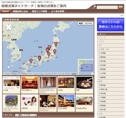 サイト閲覧者は、全国の希望地域ごとに結婚式場をマップ表示により、