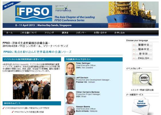 株式会社グローバル インフォメーションでは、皆様の利便性を図る為に、日本語、韓国語、中国語で「FPSO -浮体式生産貯蔵積出設備会議-」の情報を提供するとともに、会議の参加のお申し込みを承っております。
