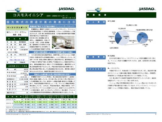 (1)対象会社名(証券コード):株式会社コスモスイニシア(8844)