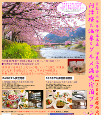 <「R&Sホテル伊豆高原」&「R&Sホテル伊豆高原蒼風」> 会員向け企画 “河津桜&温泉&グルメ満喫”宿泊プラン ~伊豆高原の「R&Sホテル」2施設で2/4~3/10まで、200名様限定。