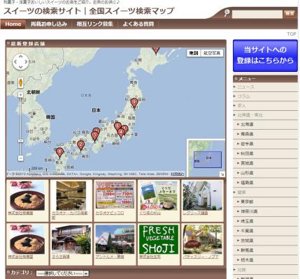 サイト閲覧者は、全国の希望地域ごとにスイーツのお店をマップ表示により、