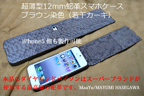 2、スマホ用のハードケース外形をすべてダイヤモンドパイソン蛇革張りで包み、