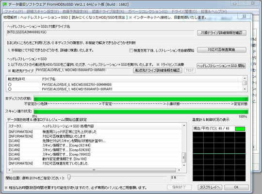 この機能により、状態が厳しく今にも壊れそうなSSDに関しましても、直接論理解析(データ復旧)にかける故障リスクを大幅に減らす事ができます。そして、セクタイメージを安全(正常)なドライブへ転送してから、じっくり、何度でも納得できるまで論理解析を実施する事ができます。 また、セクタイメージ転送先にはHDDを利用することができます。