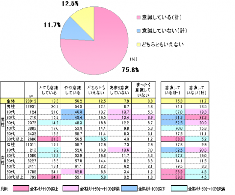 全体で見ると、「意識している(計)」は75.8%となりました。
