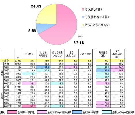 全体で見ると、「そう思う(計)」は67.1%となりました。