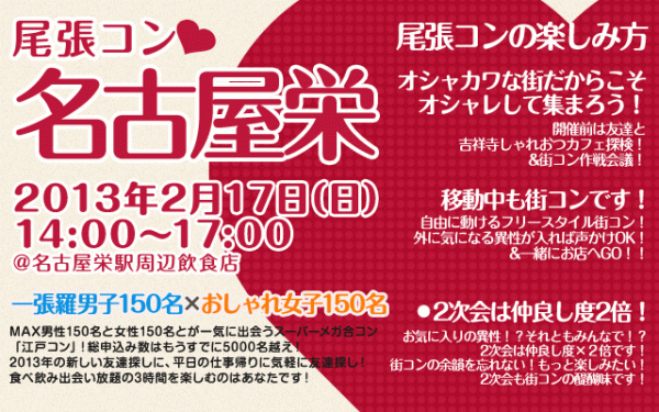 その江戸コンが2月17日に名古屋栄の地域活性化を目指し、尾張コン名古屋栄2月17日(日)を開催いたします。