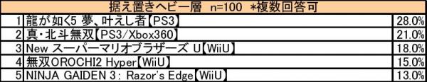 *「龍が如く5 夢、叶えし者」はライト層で自由回答が得られなかった為、ヘビー層とミドル層のみの掲載となります。