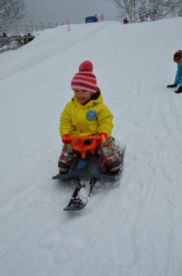 幼児の方が安心して滑れる10m以内の“そり遊び広場”を設けています。種類も人気の“スノーレーサー”をはじめ、“スノーチュービング”“ツイスター”“そり”を用意しました。