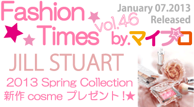 株式会社StarGazerが運営する、“自分をプロデュースするサイト” 『マイプロ』サイト内企画“Fashion Times”より 春の新作cosme“JILL STUART 2013 Spring Collection”を合計2名様にプレゼントします。春の新色&限定色ゲットのチャンスです!