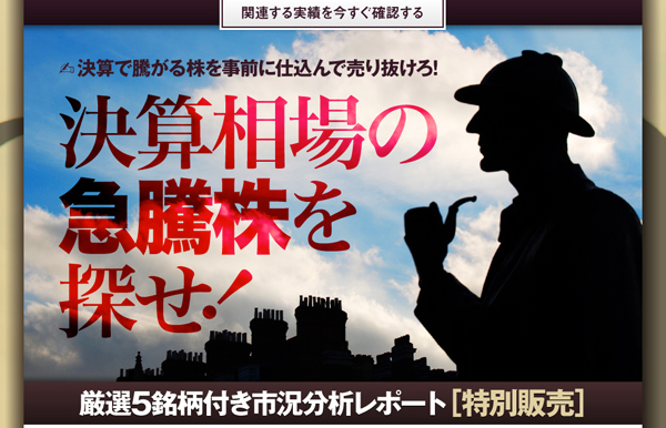 ・商品名:厳選5銘柄付き市況分析レポート「決算相場の急騰株を探せ!」
