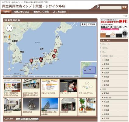 サイト閲覧者は、全国の希望地域ごとに貴金属買取店をマップ表示により、