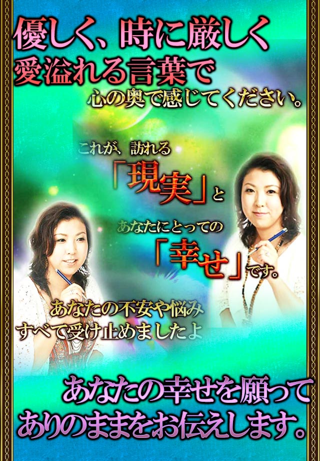 あなたの悩みも不安も全て、受け止めて、明るい未来へと変えて差し上げましょう。」