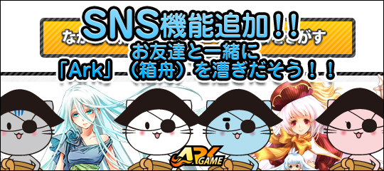 ●「ArkGame」、SNS(ソーシャル・ネットワーキング・サービス)機能追加!!お友達と一緒に「Ark」(箱舟)を漕ぎだそう!!