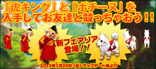 ●「虎キング」と「ポチーヌ」を入手してお友達と競っちゃおう!!新フェアリア登場!!