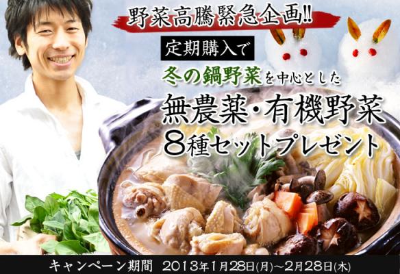 “京都産を中心とした冬野菜の無農薬・有機野菜8種セット”がもらえるキャンペーン